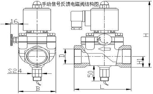 手動(dòng)帶信號(hào)反饋的電磁閥工作原理: