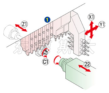 四、斯大走心機SB-16RtypeC在標準規格橫向鉆孔單元4軸的基礎上,可配備橫向鉆孔單元5軸型、可交換式橫向鉆孔單元5軸型/5軸高速型4種刀架臺,而可交換式橫向鉆孔單元5軸中的右側3軸,采用模塊化設計配備豐富的刀具單元,可根據工件需要自由安裝多種可交換式工具,展開多樣的復合加工。