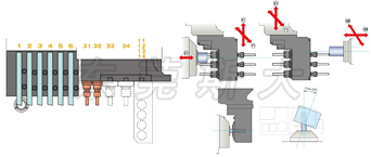 四、斯大走心機SB-20RtypeC在標準規格橫向鉆孔單元4軸的基礎上,可配備橫向鉆孔單元5軸型、可交換式橫向鉆孔單元5軸型/5軸高速型4種刀架臺,而可交換式橫向鉆孔單元5軸中的右側3軸,采用模塊化設計配備豐富的刀具單元,可根據工件需要自由安裝多種可交換式工具,展開多樣的復合加工。